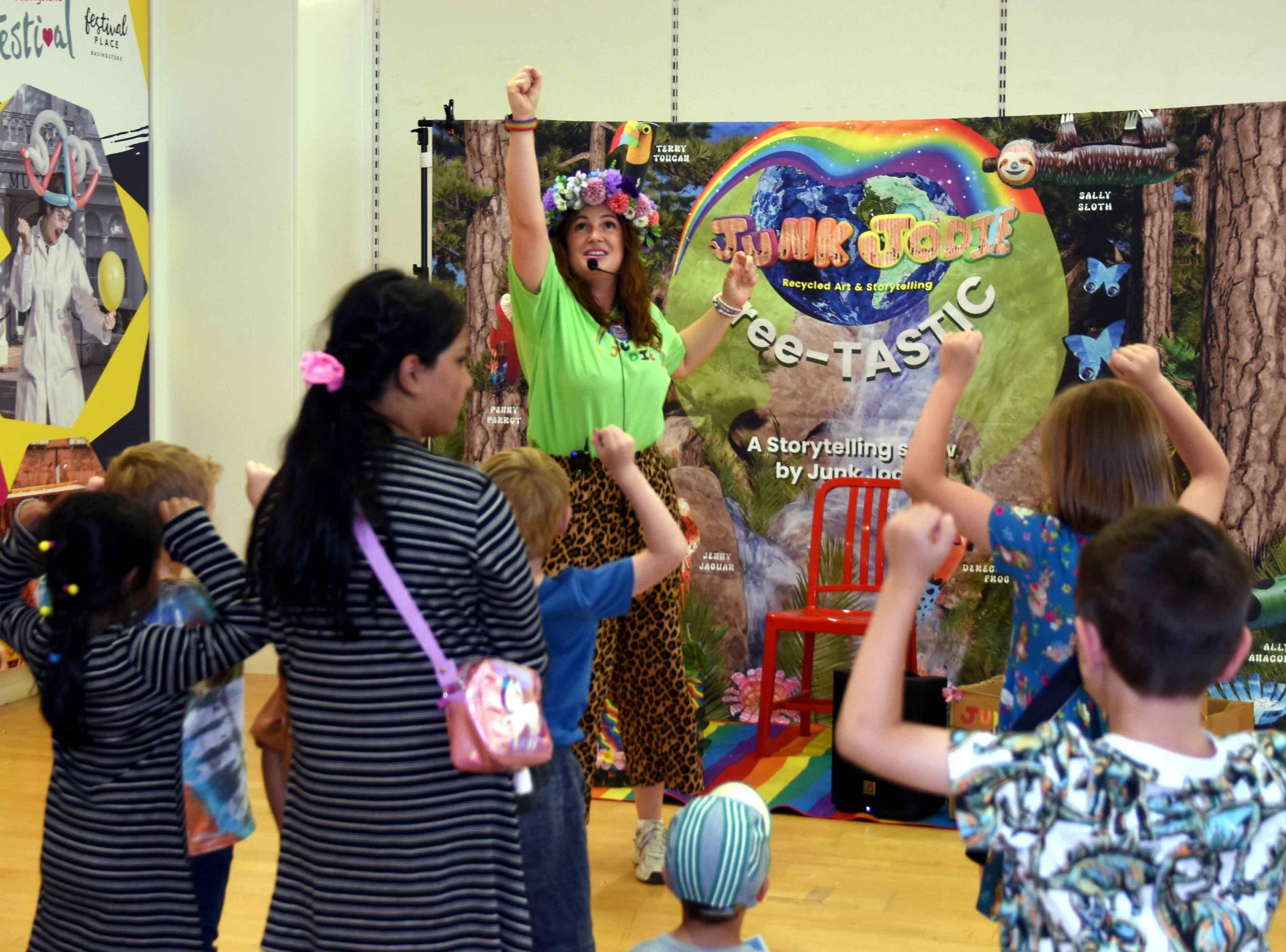 Join Junk Jodie and Jenny on a journey through the Amazon rainforest. Learn how we can protect the trees and the animals homes, as well as the benefits that the trees and the Amazon rainforest provide for the planet. This interactive storytelling show includes songs and dancing and is designed to inspire you to create toys from junk and bring them to life with your imagination.